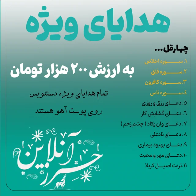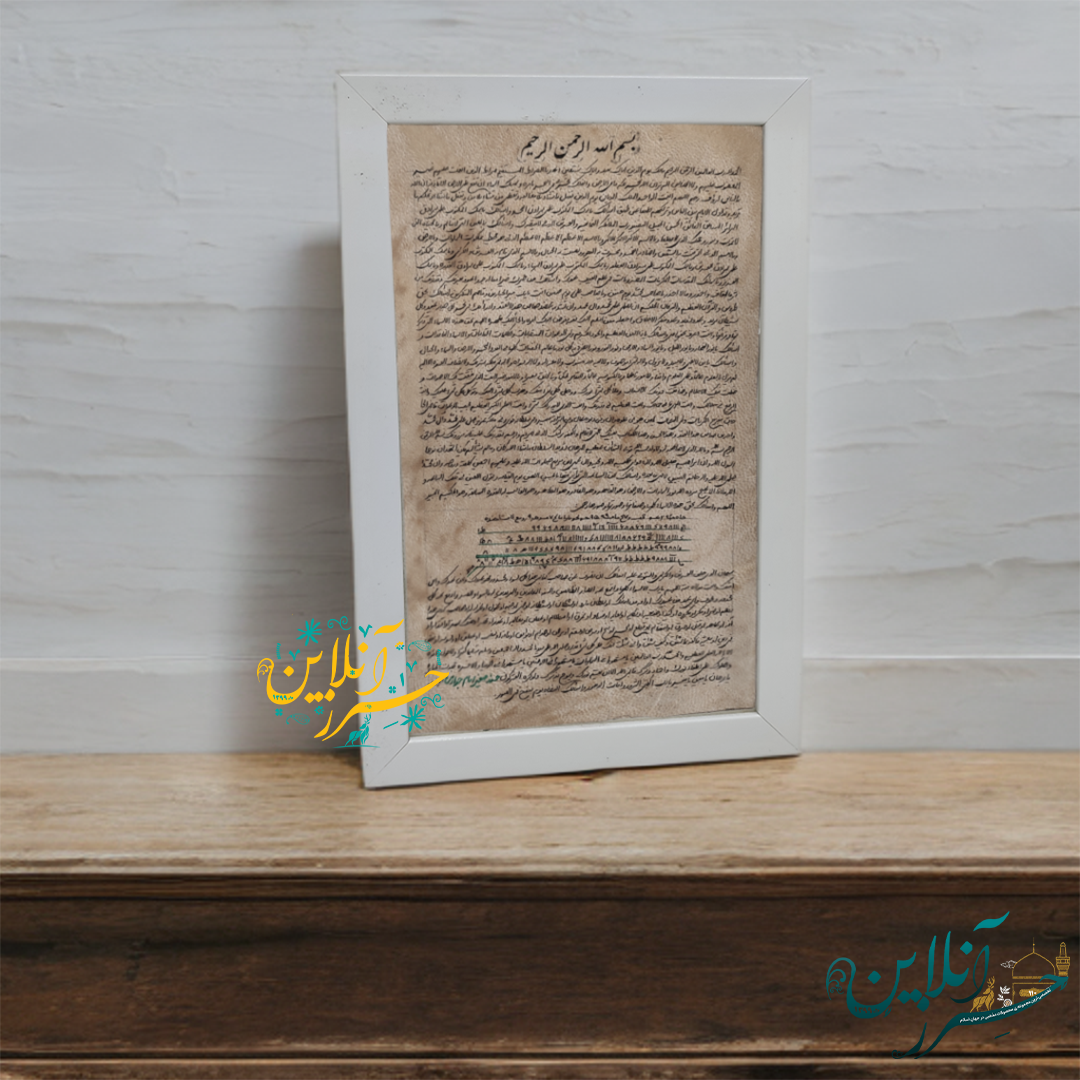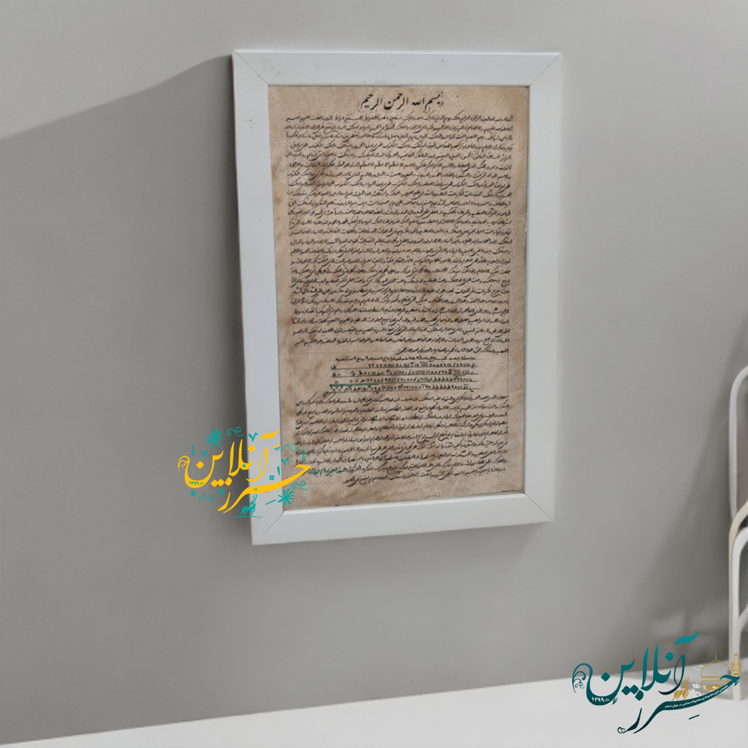 تابلو، حرز روی پوست آهوی اصلی با بالاترین کیفیت نگاشته میشود و با یک قاب و شیشه مرغوب تزئین میشود تا نه تنها یک محافظ قدرتمند، بلکه یک هدیه ماندگار باشد. - انرژی مضاعف حرز کبیر و صغیر