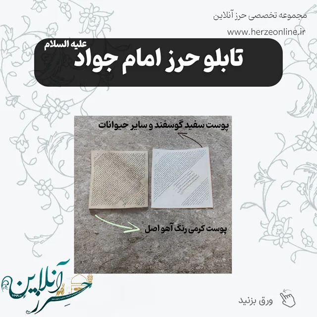 تابلو حرز امام جواد(ع) دستنویس روی پوست آهو با رعایت آداب اسلامی(کبیر و صغیر) g3