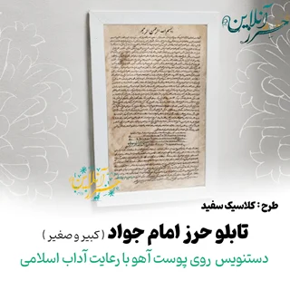 ✨ تعلل جایز نیست! هم اکنون تابلو حرز امام جواد (ع) را سفارش دهید و خانه خود را به قویترین سپر معنوی مجهز کنید.