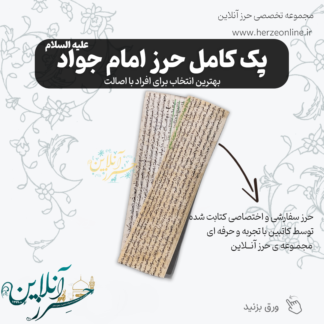 حرز امام جواد (ع) در مجموعه تخصصی حرز آنلاین، اثری کاملاً سفارشی است که در مشهد مقدس، در جوار حرم نورانی امام رضا (ع) توسط بهترین و باتجربهترین اساتید و کاتبین نوشته میشود. این حرزها بهصورت کاملاً دستنویس و بر روی پوست آهو اصل و در ساعات سعد کتابت میگردند؛ امری که رعایت آن در اصالت و تأثیر معنوی حرز بسیار حیاتی است.