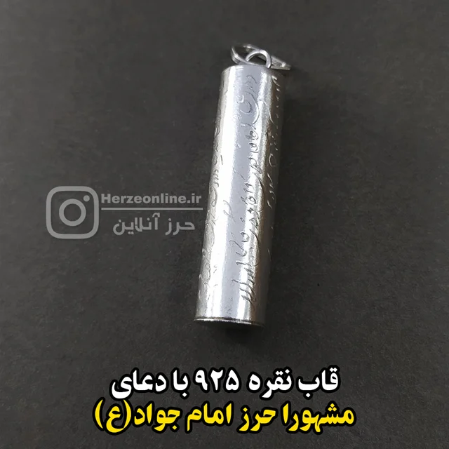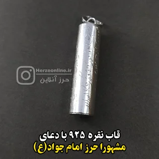 حرز امام جواد علیه السلام زعفران نویس ، محفظه نقره اصل با دعای یا مشهور و بازوبند چرم طبیعی
